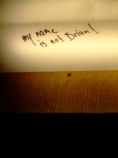 Maybe more bizarre was the message graffiti'd on the light in the lift...